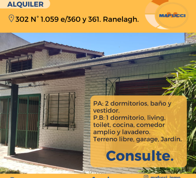 302 N° 1.059. Ranelagh. PA: 2 dormitorios, baño y vestidor. P.B: 1