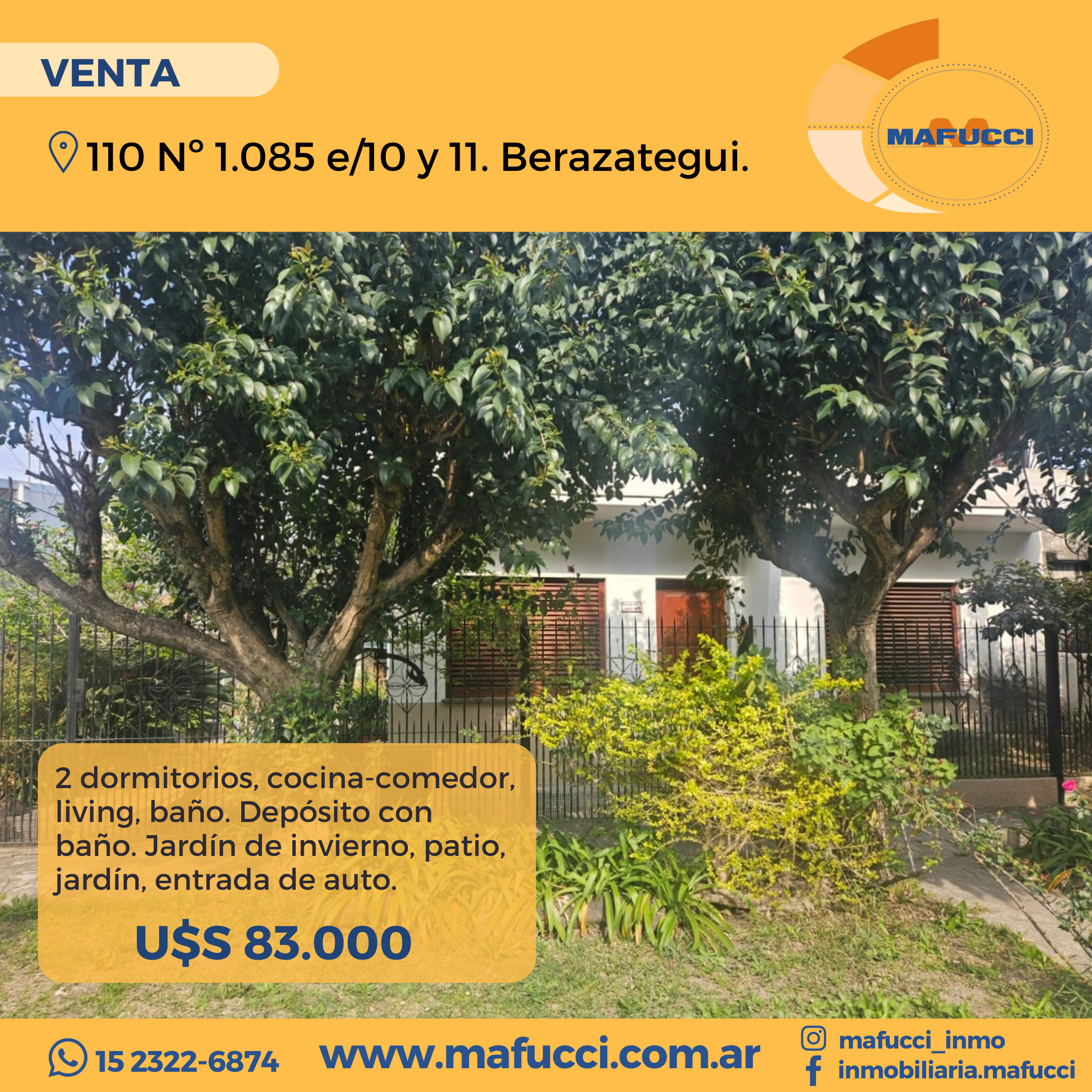 Comodidades: 2 dormitorios, cocina-comedor, living, baño.  Depósito con baño. Jardín de invierno, patio, jardín, entrada de auto. Parrilla.