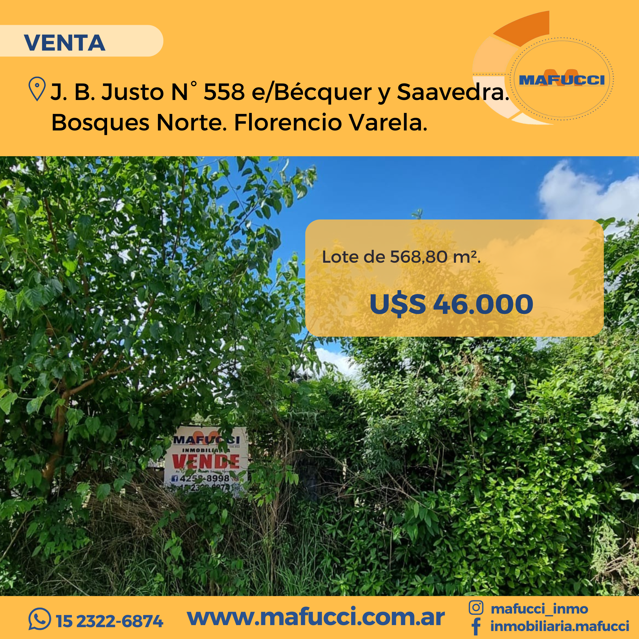 J. B. Justo N° 558 e/Bécquer y Saavedra. Bosques Norte. Florencio Varela.