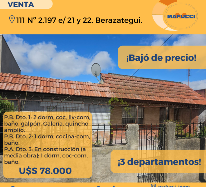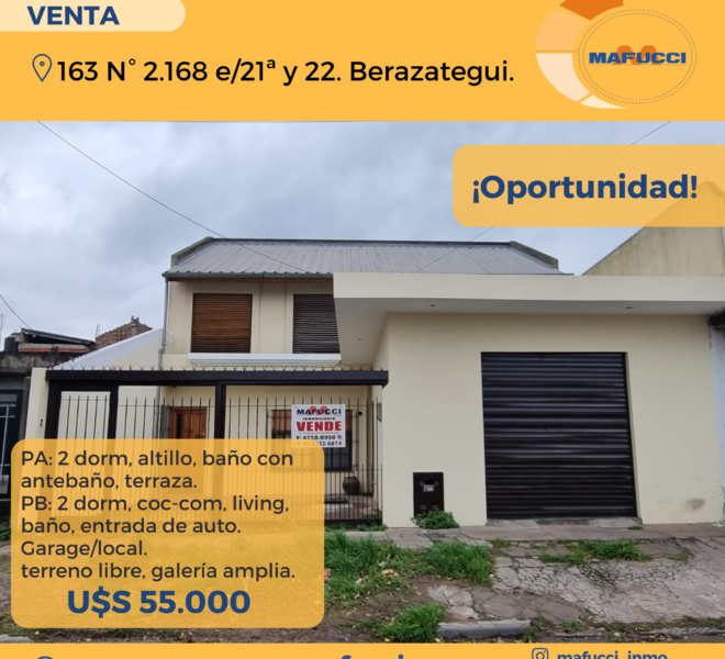 ¡OPORTUNIDAD EN BERAZATEGUI! 🏠✨ 📍 Ubicación: Calle 163 N° 2168 e/ 21a…