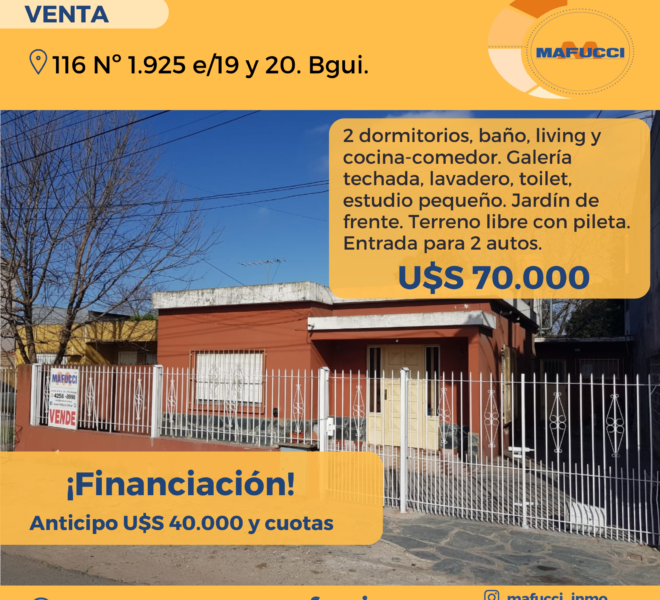 CASA: 116 Nº 1.925 e/ 19 y 20. Berazategui. Comodidades: 2 dormitorios,…