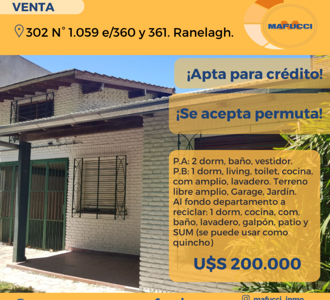 CHALET: 302 Nº1.059 e/ 360 y 361. Ranelagh. Comodidades: P.B: 1 dormitorio,…