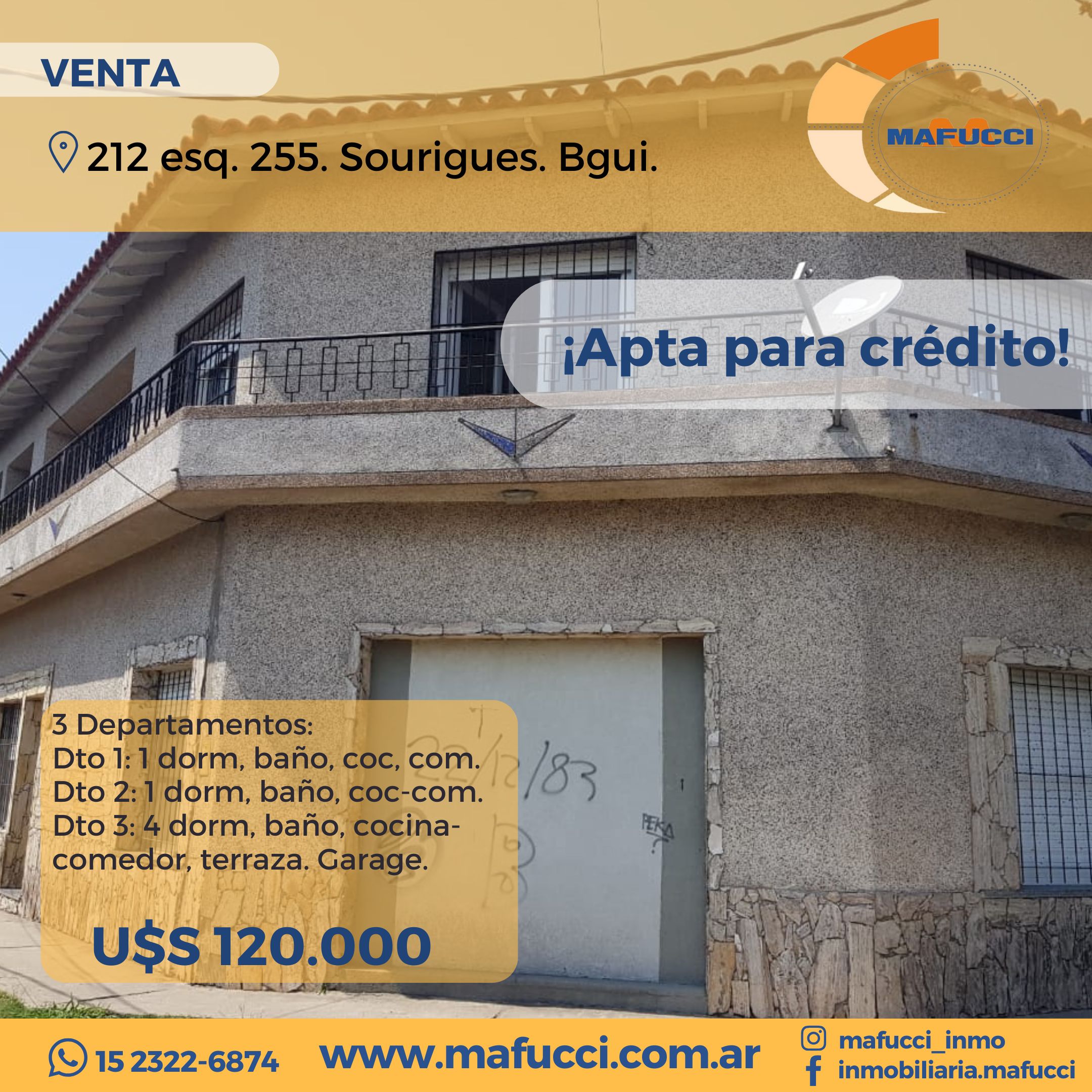 3 dptos en 212 N°503 esq. 255. Sourigues.