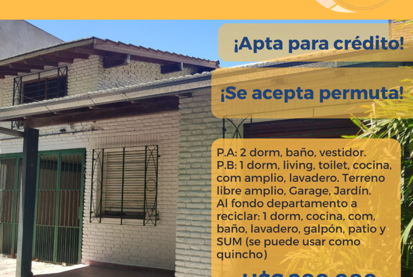 Apta para crédito bancario. Se acepta permuta. ¡Se escuchan propuestas!
