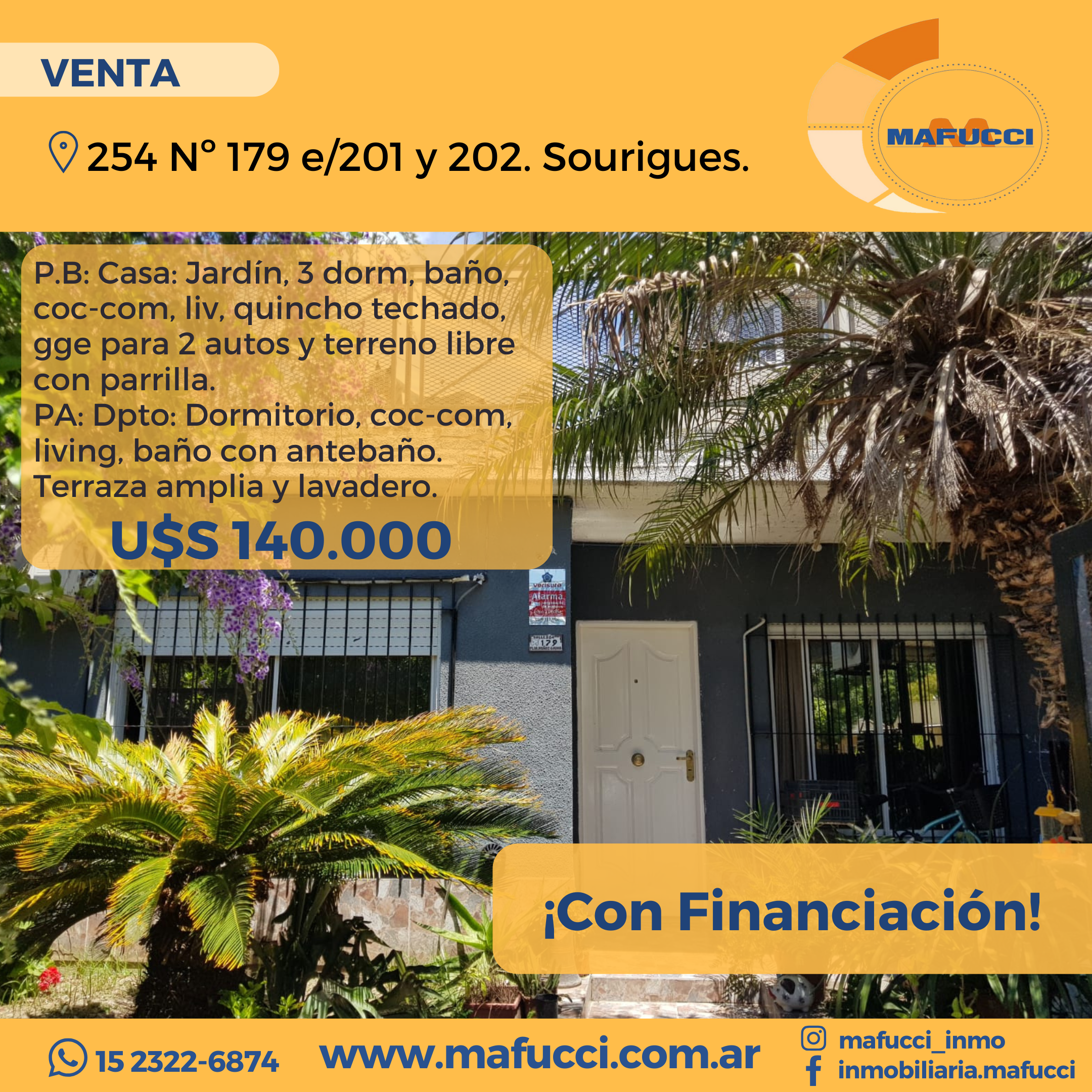 CASA y DEPARTAMENTO: 254 Nº 179 e/201 y 202. Sourigues.